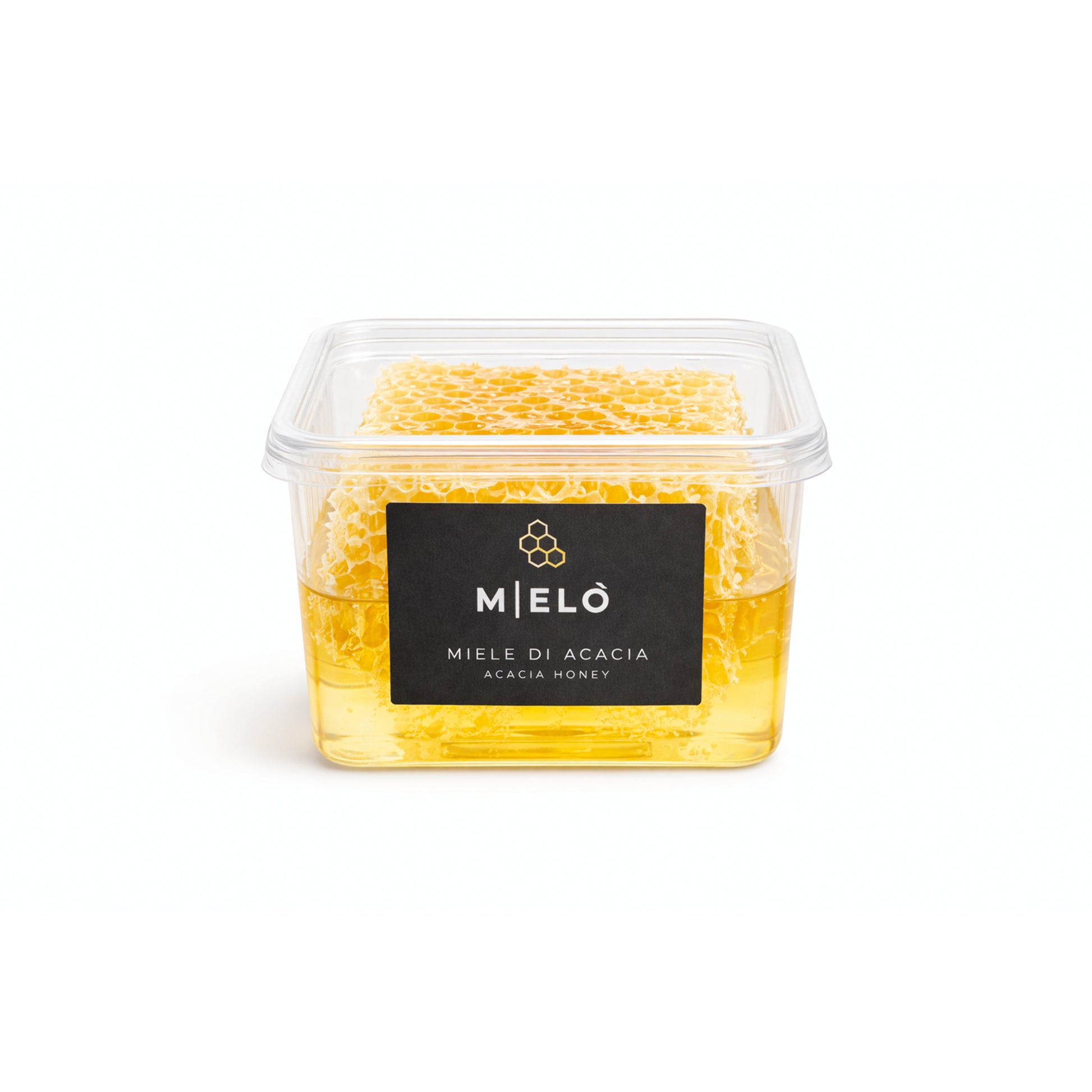 Il miele di acacia, raccolto in Italia da fioriture selezionate, viene lasciato nel suo favo originale, senza alcuna lavorazione, per offrire un’esperienza genuina e completa, che unisce gusto e materia.